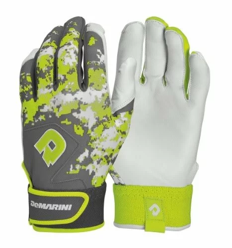 Rock your swagged out DeMarini Digi Camo II Batting Gloves all season long! Â These batting gloves feature an updated pro fit with a smooth sheepskin leather palm, a 4-way ribbed spandex backhand and silicon overlays for added structure . Â The Digi Camo II is designed for the hardcore ball player!
