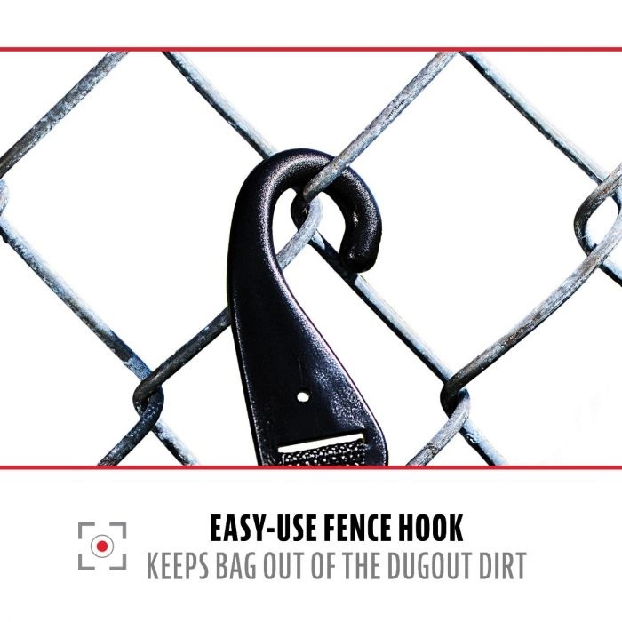 - EASY-USE FENCE HOOK – Convenient j-style hook allows bag to hang on dugout fence for easy accessibility